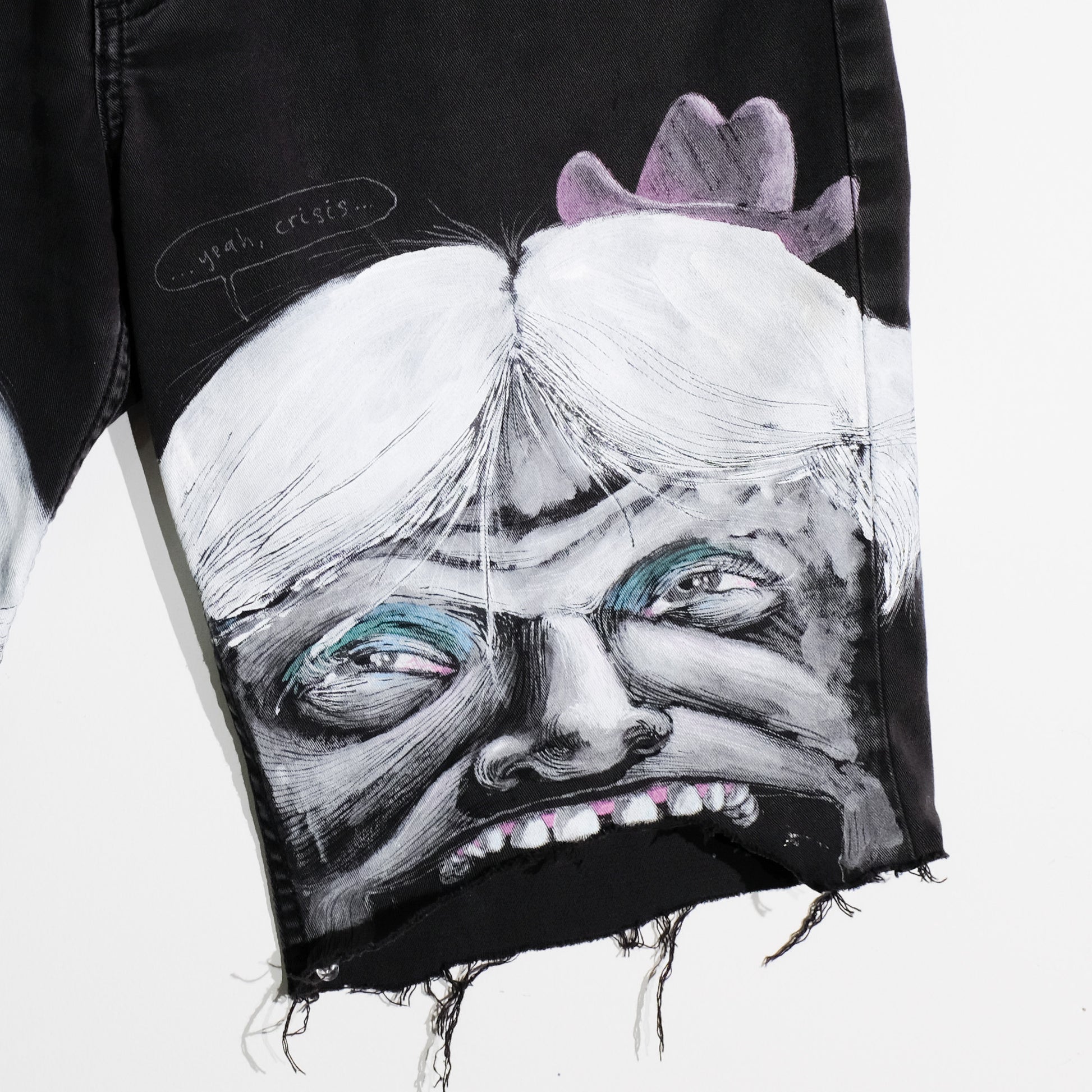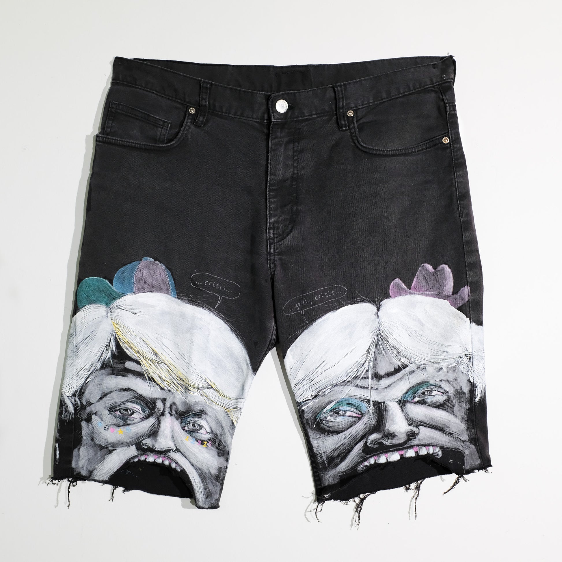 Hand painted Faces on denim shorts