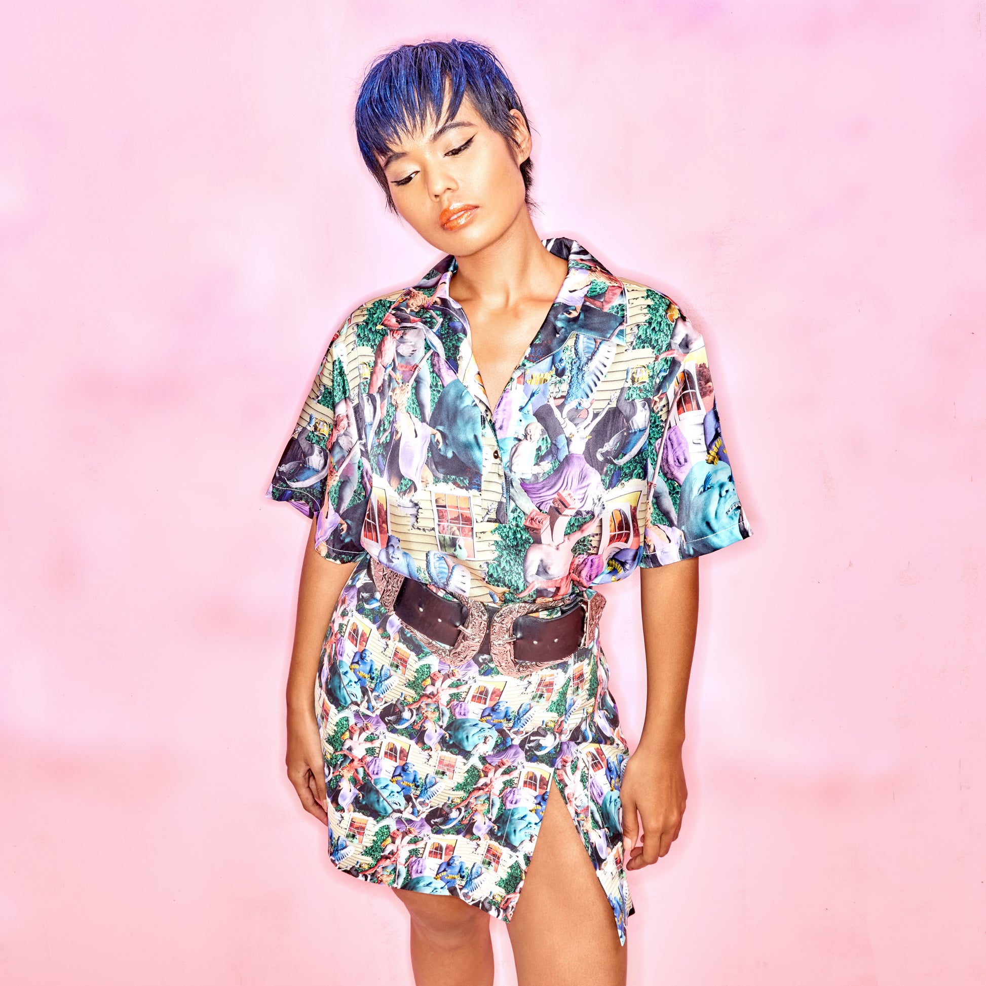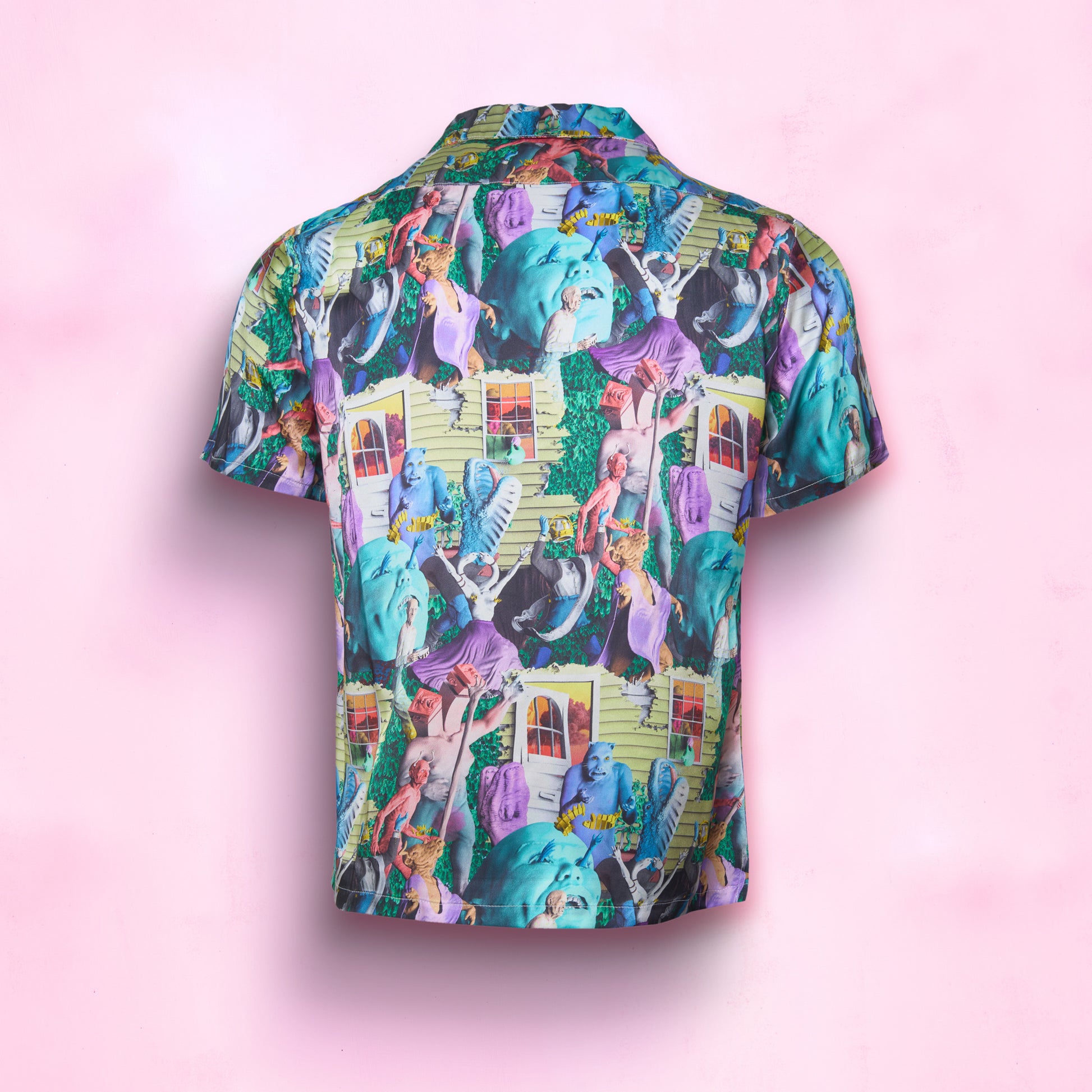 - Printed 6A mulberry silk charmeuse shirt featuring THE PARADES!