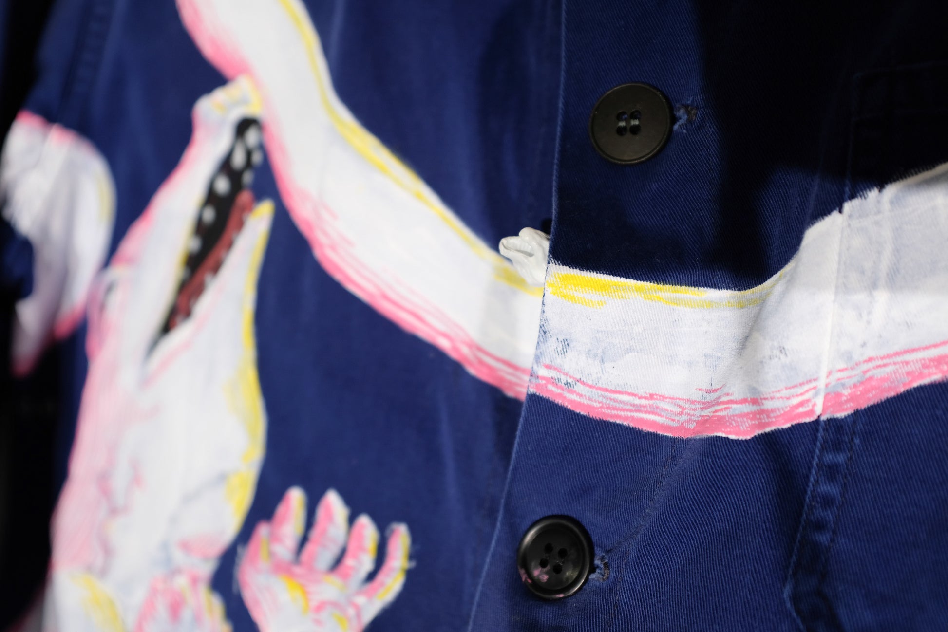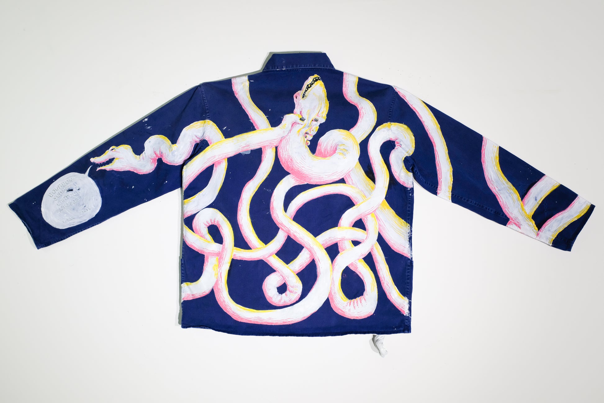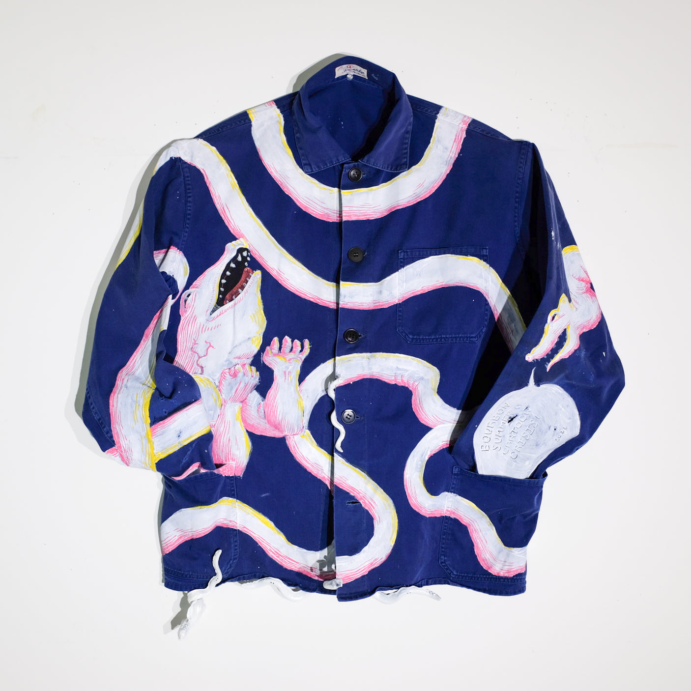 Full-length chore coat with hand-Painted anatomy of an eel.