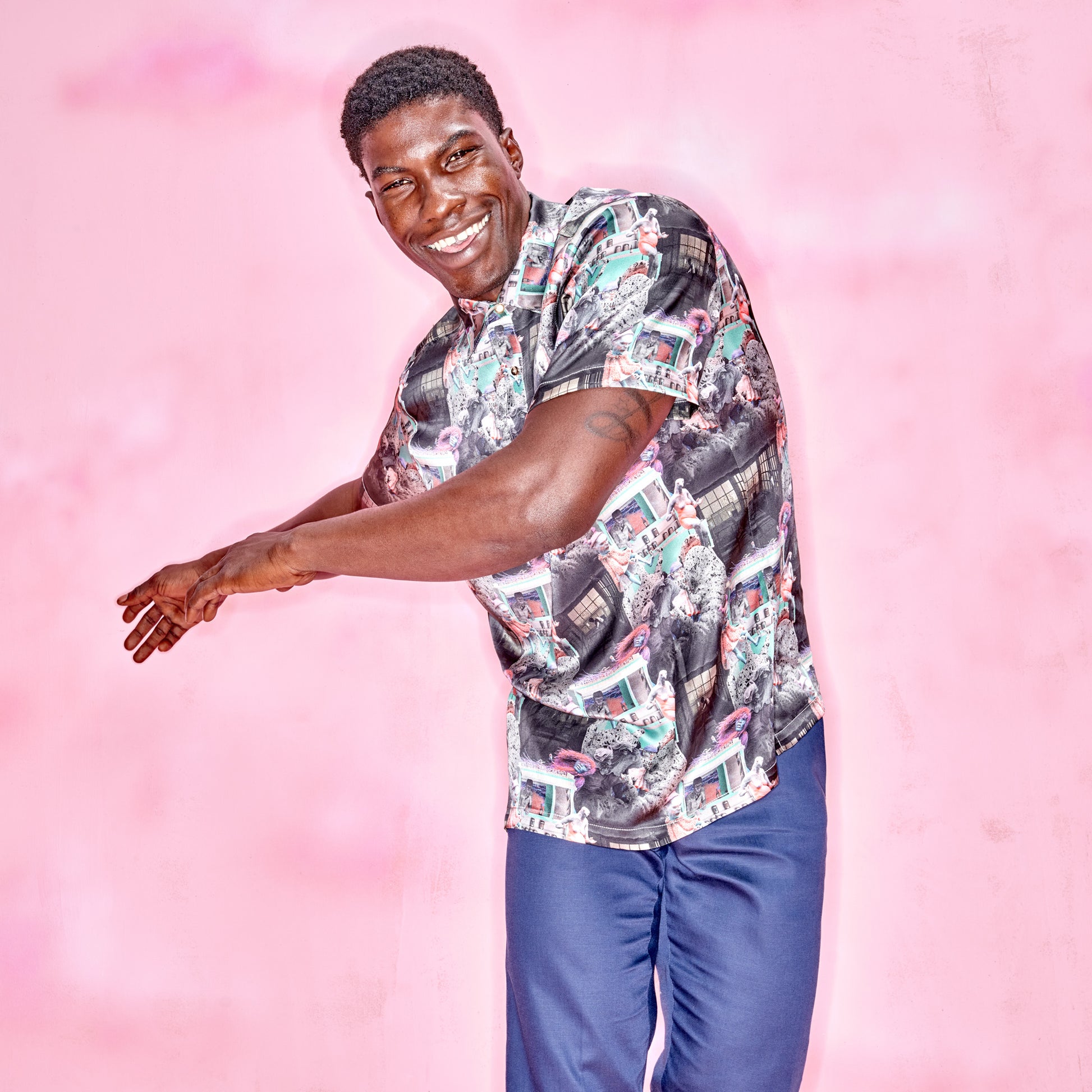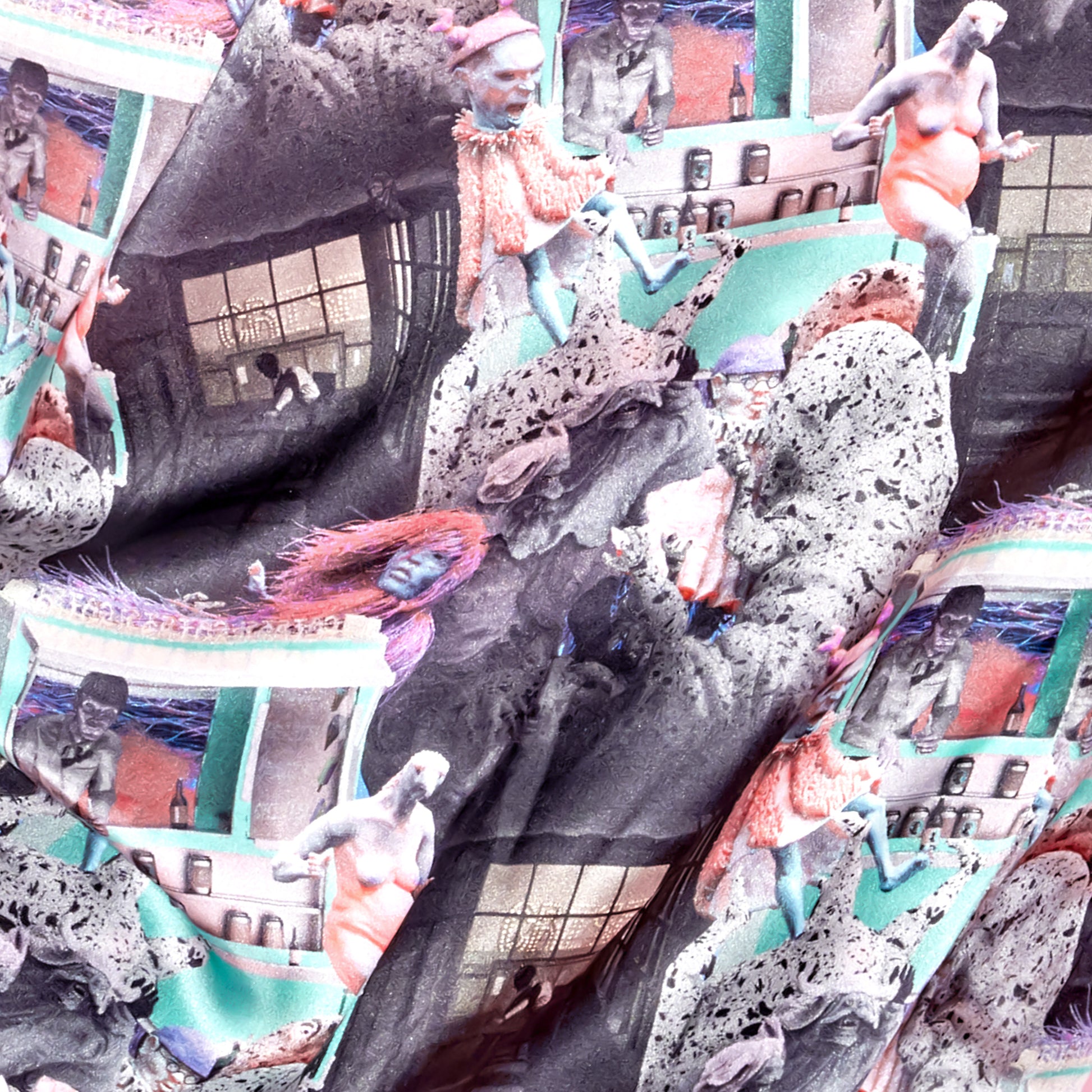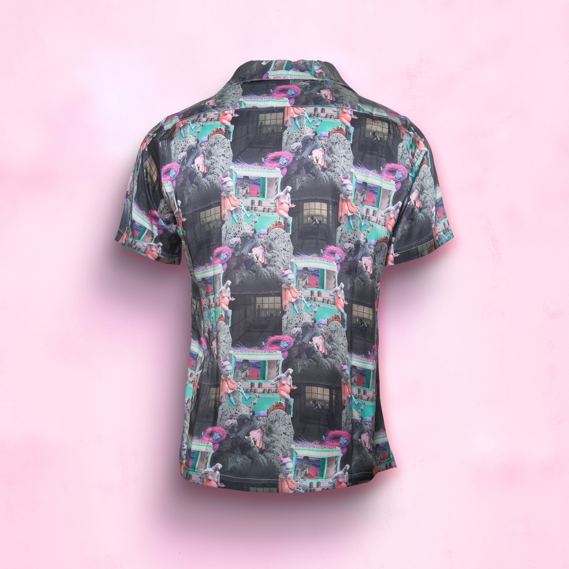 - Printed 6A mulberry silk charmeuse shirt featuring THE PARADES!